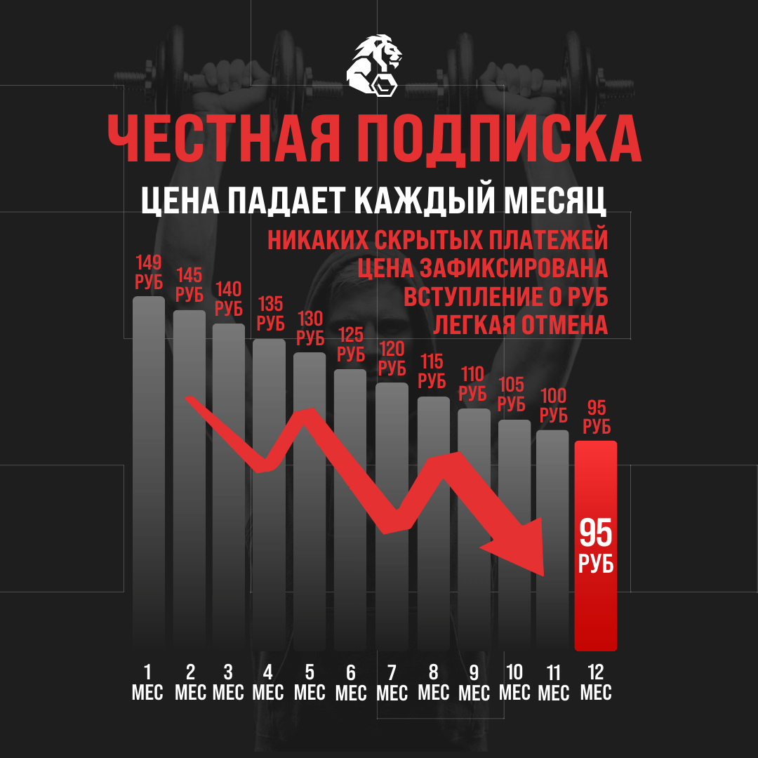 Оформляйте 12-месячную подписку и платите за тренировки всё меньше с каждым месяцем!