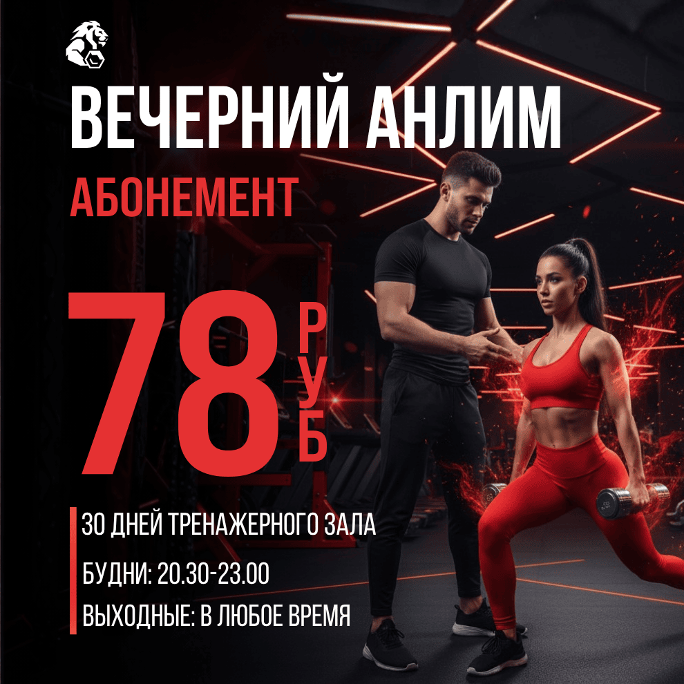 В абонемент входит 30 дней посещения тренажерного зала в указанное время